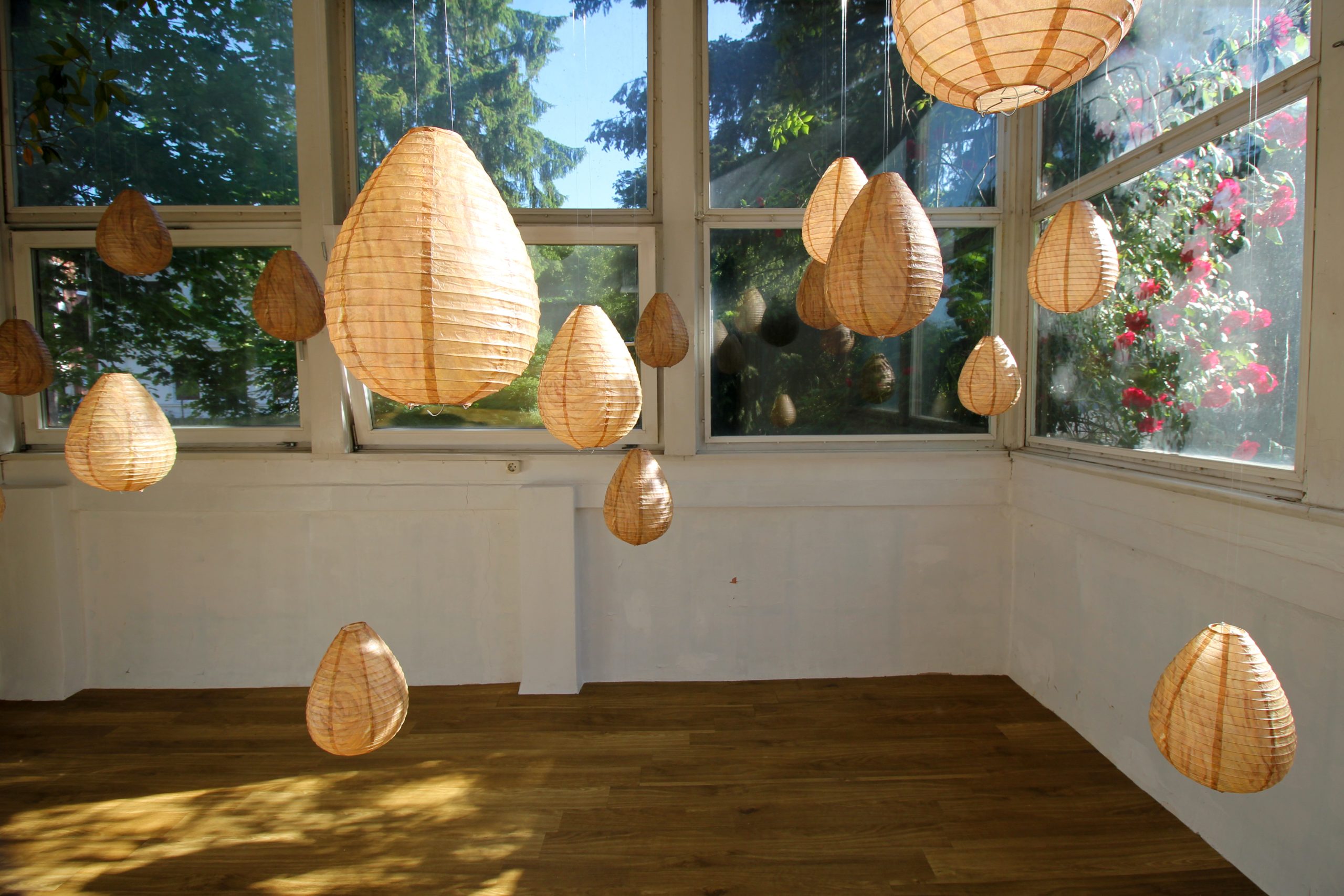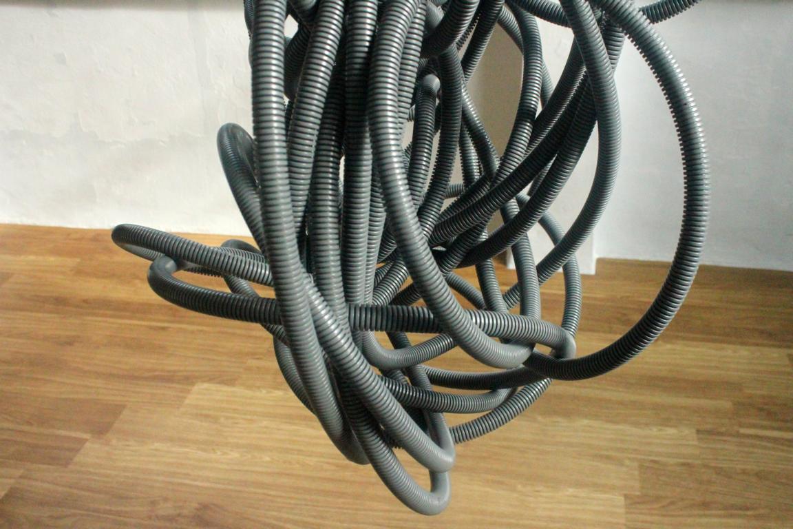 „Als Sternschnuppen bezeichnet man das kurze Aufleuchten der Luft, das durch die in die Erdatmosphäre eintretenden Gesteinsteilchen entsteht. – Inspiriert durch die ,Perseiden’ werden in der Installation ,Tonschnuppen’ aufglimmen und versinken.“