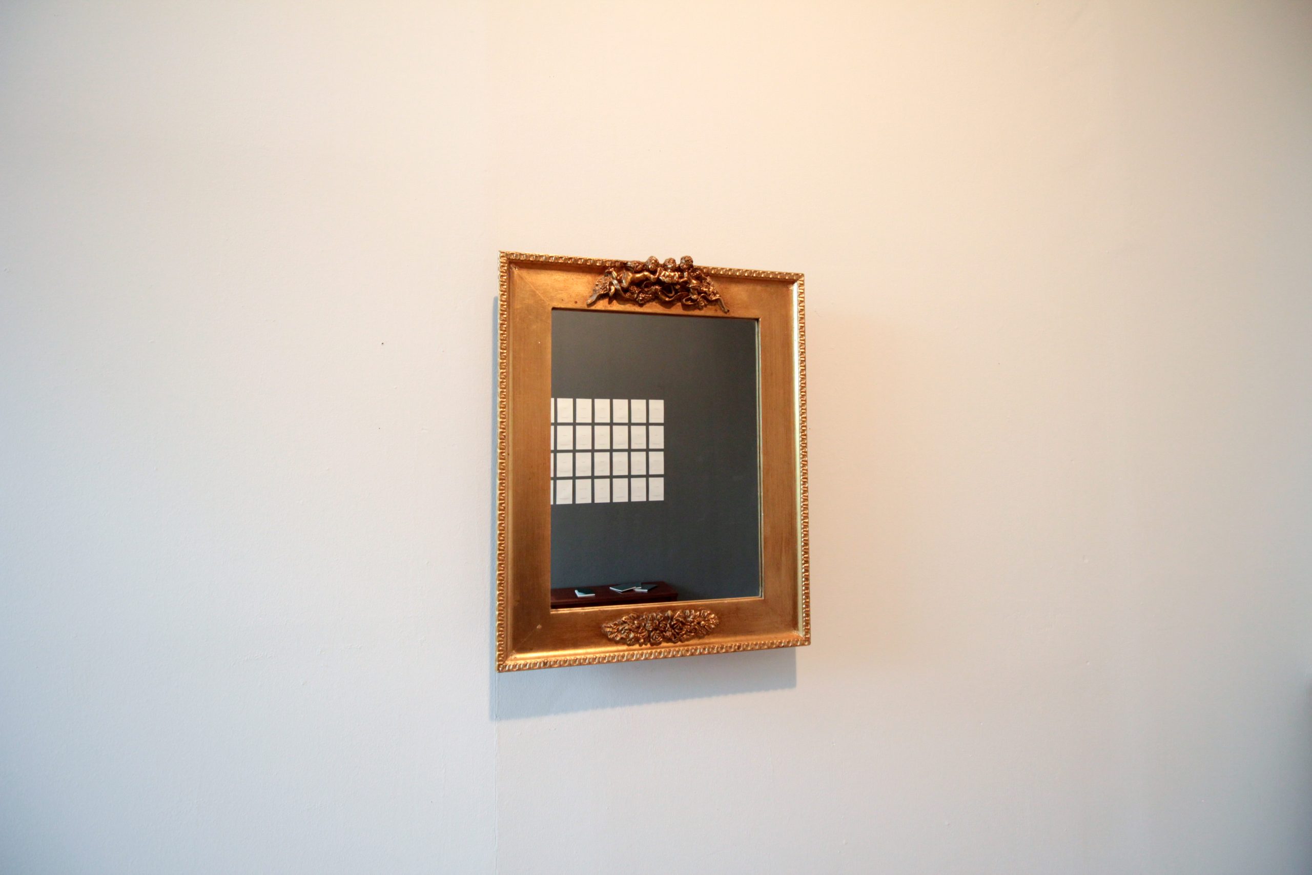 Katja Kölle verbindet in ihrer Klang-Raum-Installation leise Sprachfragmente mit Spiegeln, Spiegelfolien, Wasser, Salz, Papier, einer Büste von Surya Tüchler und objects trouvés künstlerisch miteinander. Sich aus dem Zusammenspiel ergebende Fragen können selbstbezüglich werden: Wie begegne ich meinem Spiegelbild? Kann ich die Gefühle anderer spiegeln? Wie klingt Gespiegeltes?