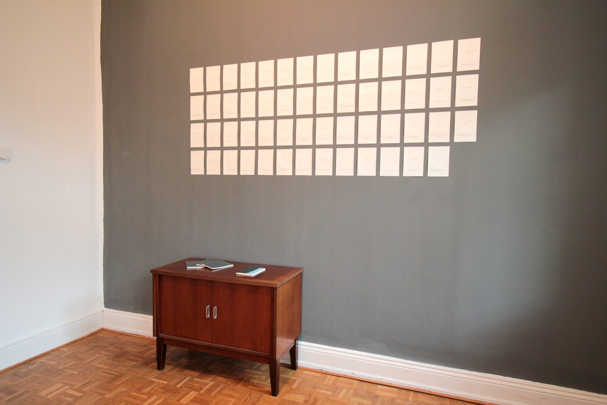 Stattdessen wird man über die Ausstellungsdauer auf ein dunkles Getränk und, wenn man möchte, zum Gespräch eingeladen. Man kann in den dunklen Klängen wandeln, an die kleinformatigen, dunklen Bilder herantreten und wird spätestens beim Einverleiben des Dunkelgetränks mit den wahrnehmungsübergreifenden Fragen der Rauminstallation befasst sein.