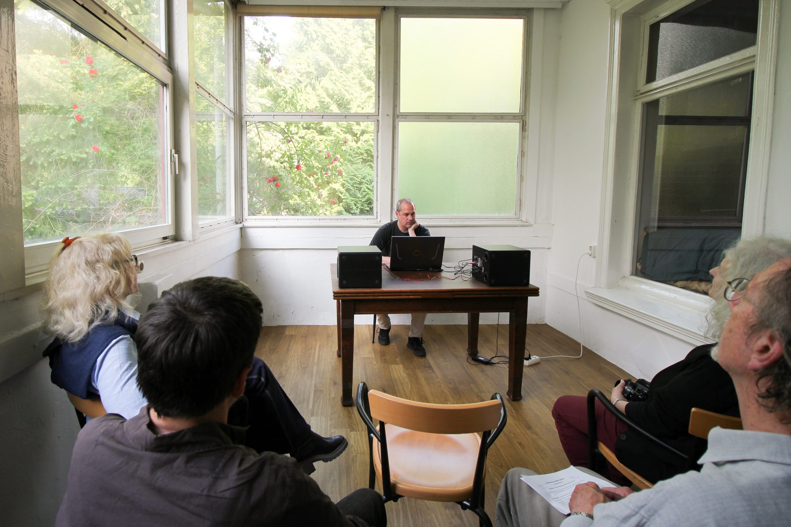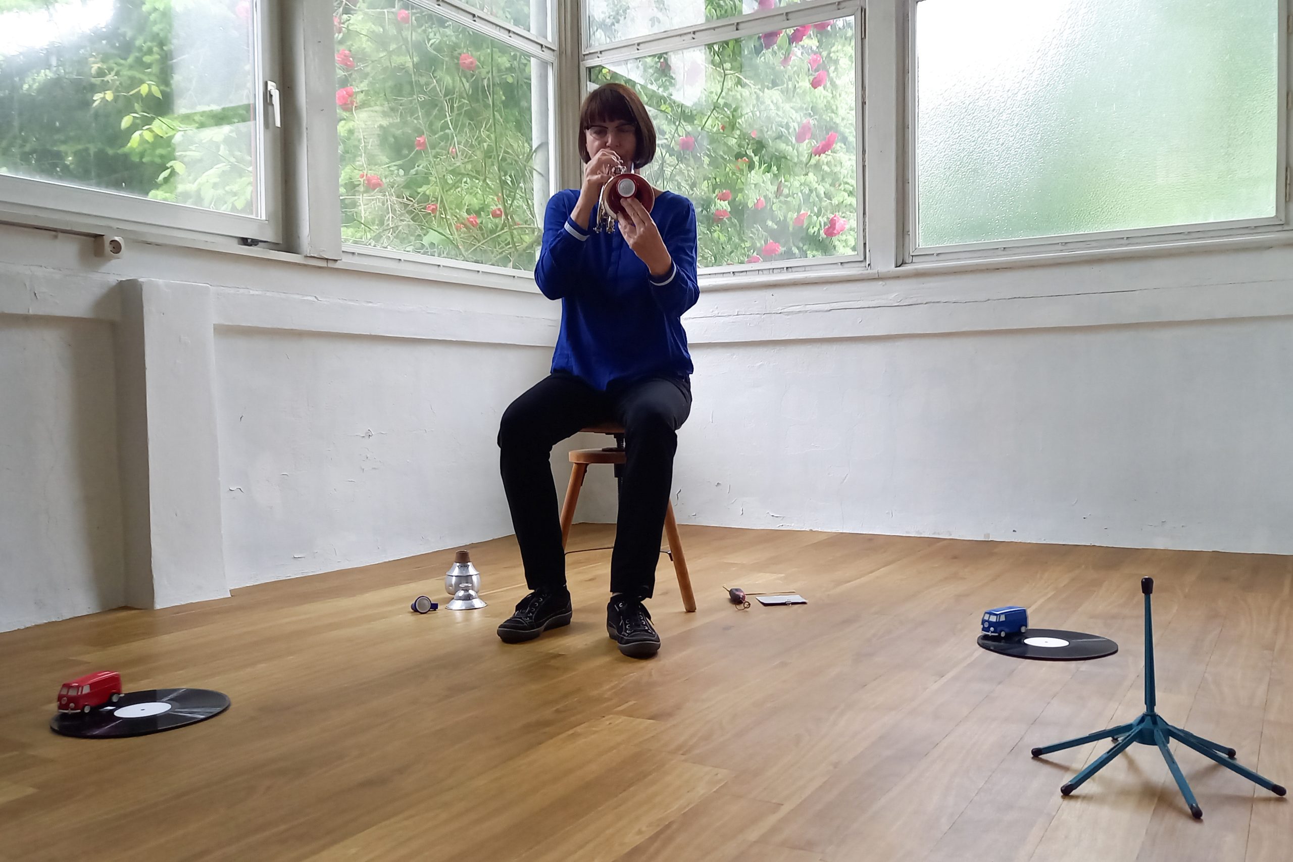 Ganz das Gegenteil zu den Schallereignissen, denen Felicitas und James Kölle (und viele ihrer Nachbarn) ausgesetzt wurden, als dieses ehemals dörfliche Zentrum von Bahrenfeld durch eine Autobahnschneise zerteilt und mit einer permanenten Lärmbelästigung aus Motorenlärm und Fahrgeräuschen überflutet wurde. Jetzt, 40 Jahre später werden an der Autobahn endlich Lärmschutzmaßnahmen ergriffen, und in dieses Landhaus von 1895 kehren Geräusche, Klänge und Töne in Form symbolischer künstlerischer Darbietungen zurück.