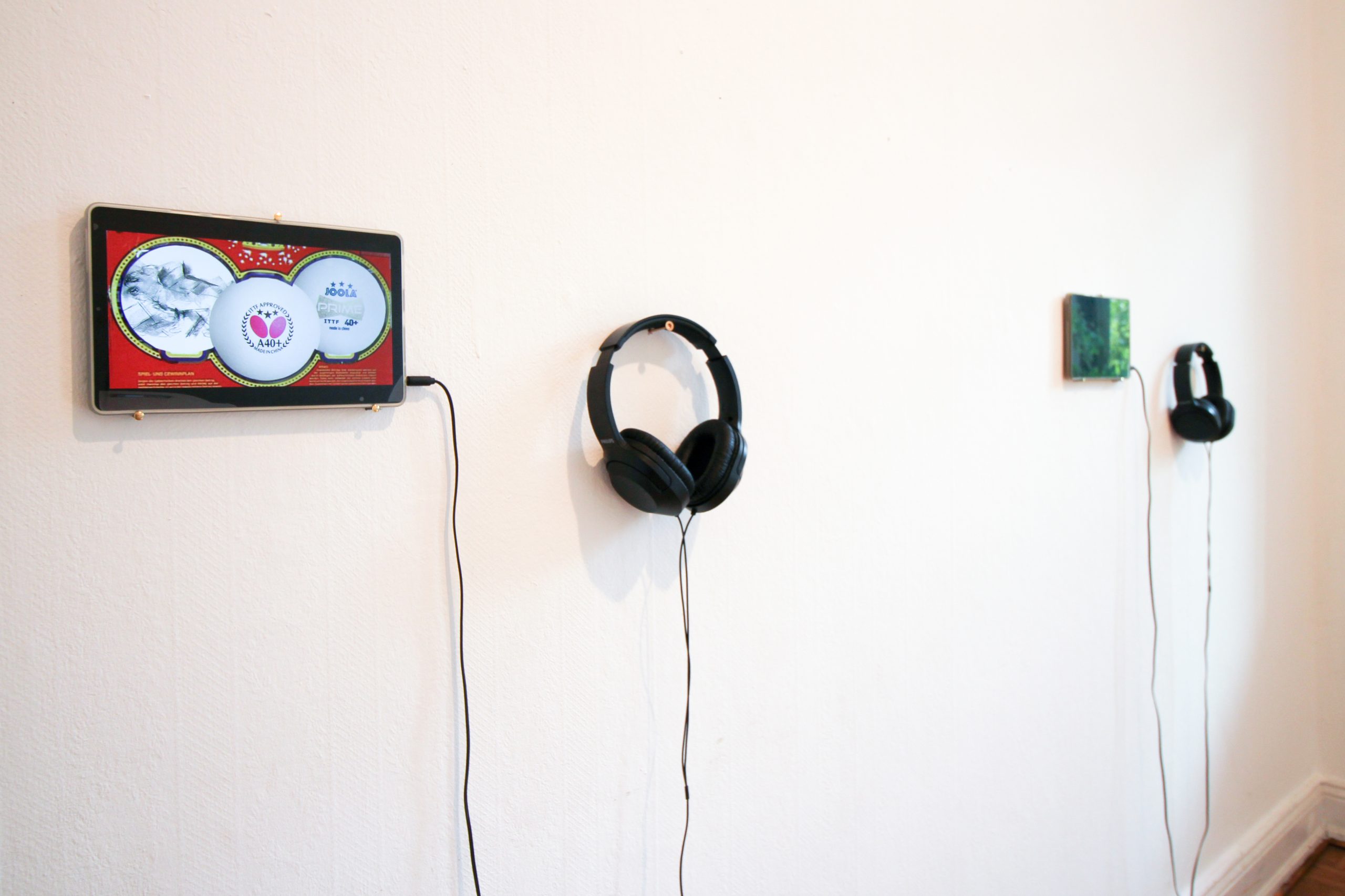 Das Hamburger Künstlerpaar thematisiert in seiner Ausstellung „Klang durch Spiel“ zwei Arten der Klangerzeugung. Die eine bezeichnet Geräusche, welche während spielerischer, freier Handlungen entstehen. Die andere kommt von komponierten Klängen und Geräuschen eines Musikstückes.