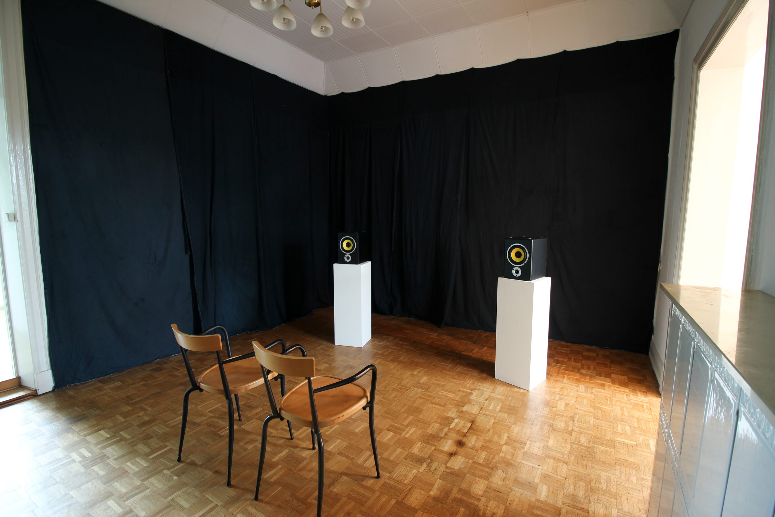 In der Ausstellung mit ephemerer ortsbezogener Klangkunst geht es um die akustische Erforschung von Räumen. Der Raum ist mehr als nur ein Rahmen für die Arbeiten: Er steuert seinen architektonischen, funktionalen und historischen (Bau)Körper mit vielen Eigenschaften bei und wird so Teil der Arbeit.